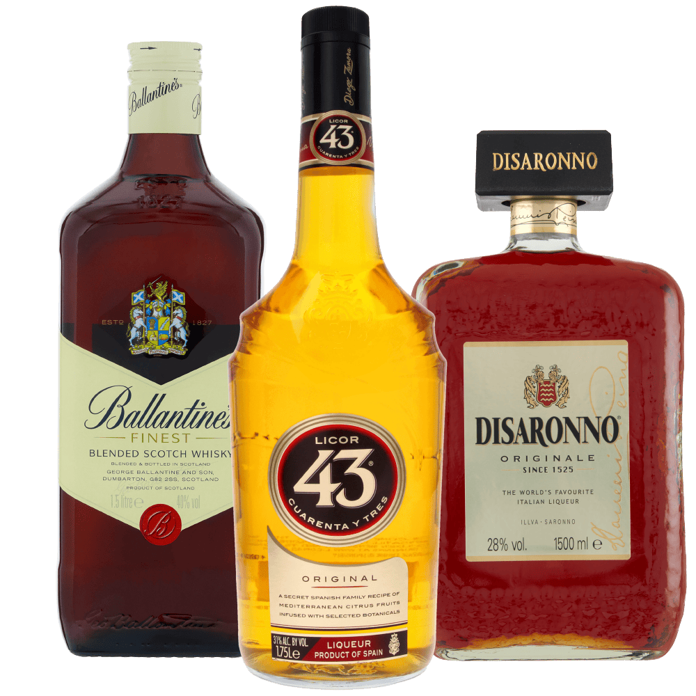 Ballantine’s whiskey, Disaronno originale en Licor 43 original