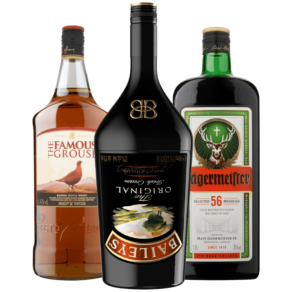 Baileys The Original Irish cream, The Famous Grouse finest en Jagermeister