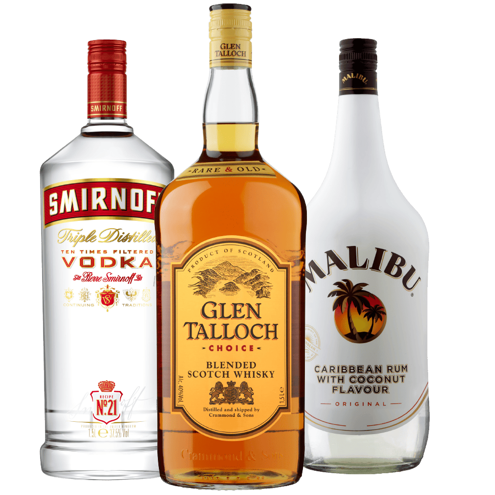 Smirnoff Red no. 21, Malibu White rum en Glen Talloch whisky