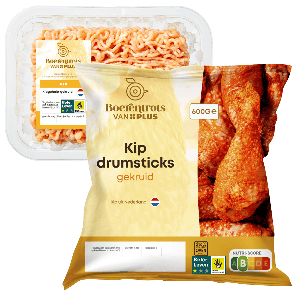 Boerentrots van PLUS Kipdrumsticks en kipgehakt