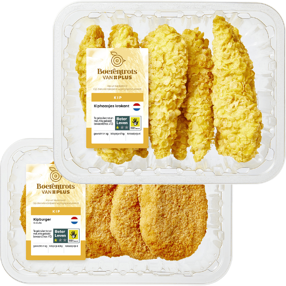 Boerentrots van PLUS Kipburgers en kipfilethaasjes