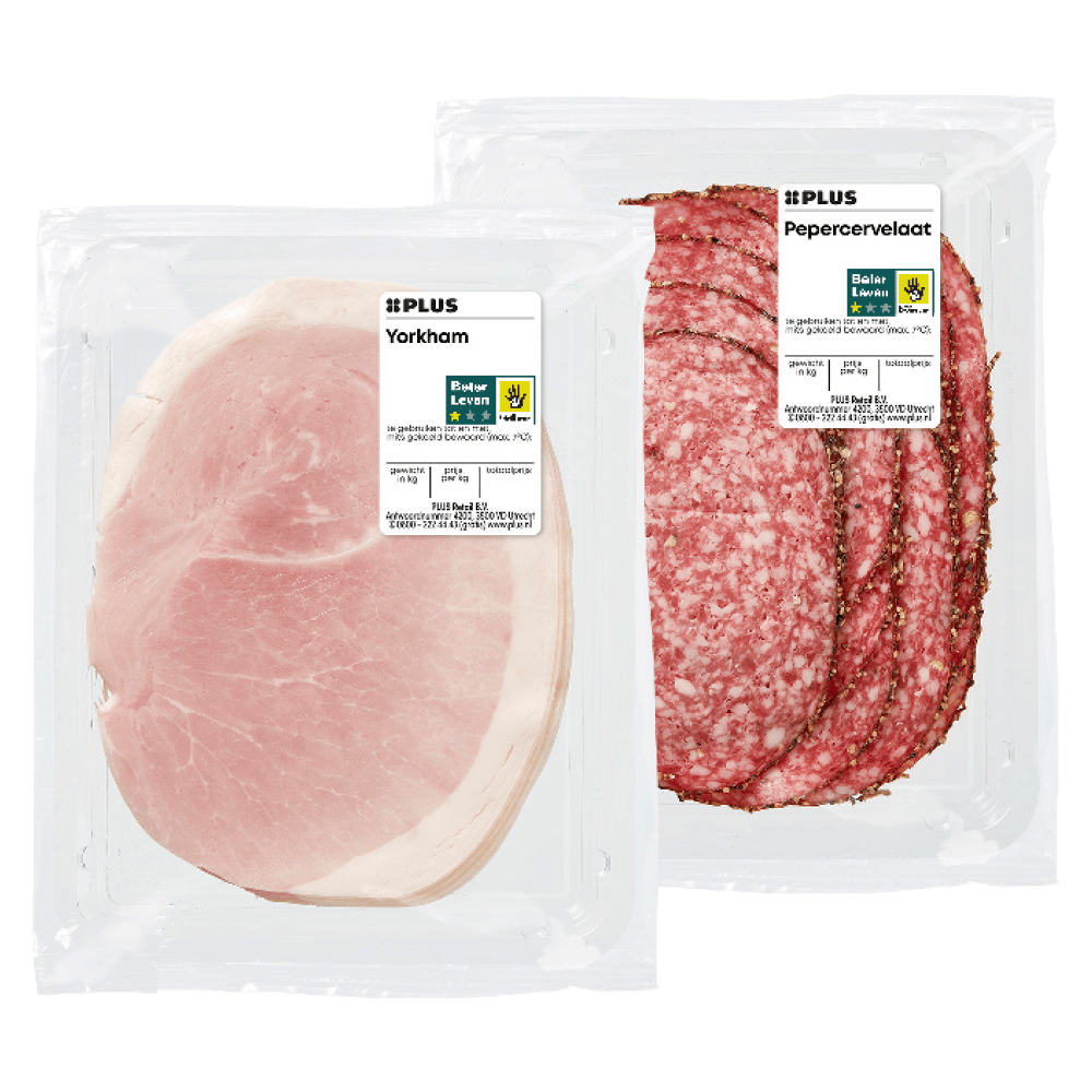 PLUS Yorkham, gebakken beenham en pepercervelaat